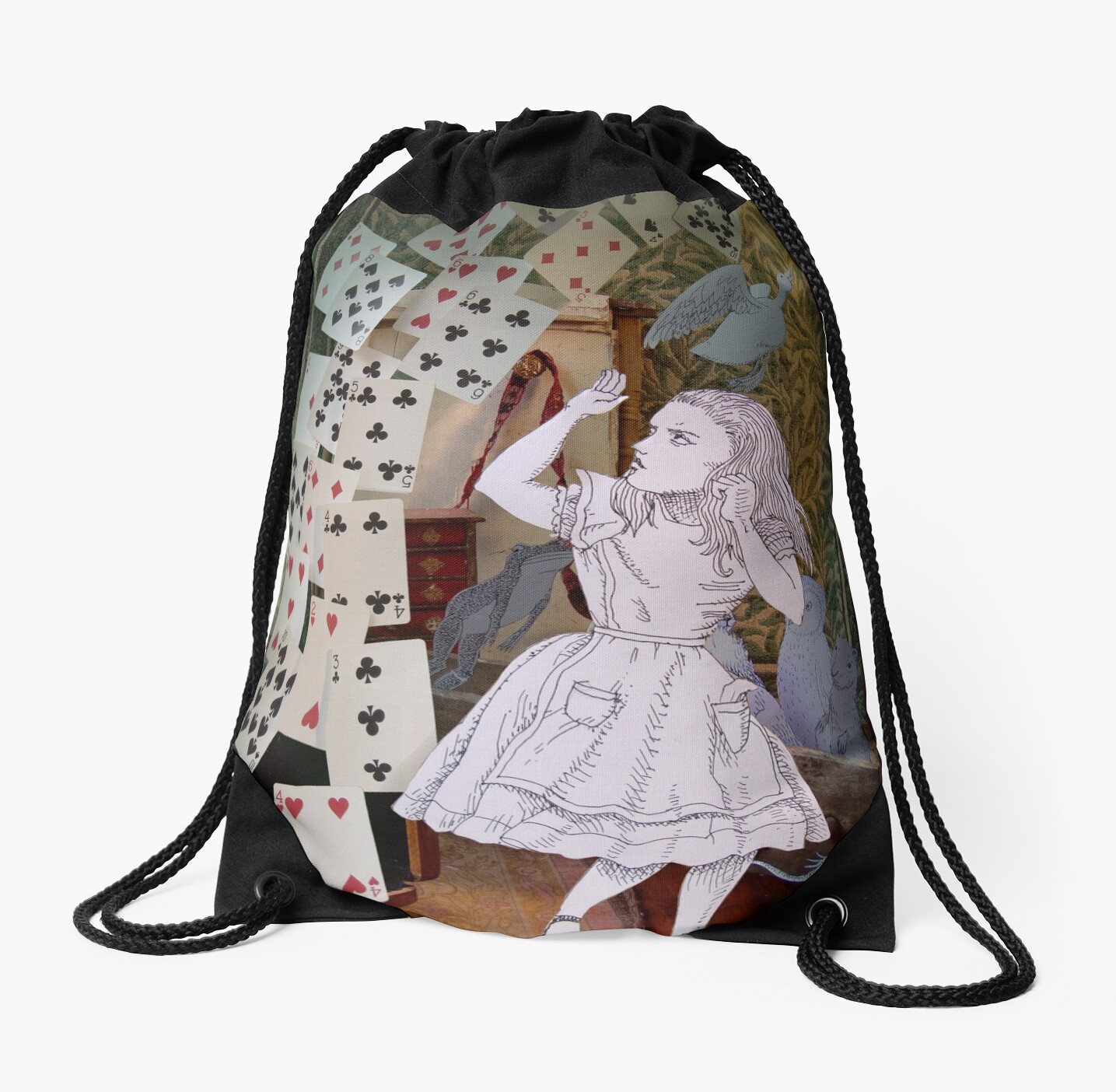 “Alice In Wonderland/The Pack of Cards” Drawstring Bags by SusanSanford Redbubble