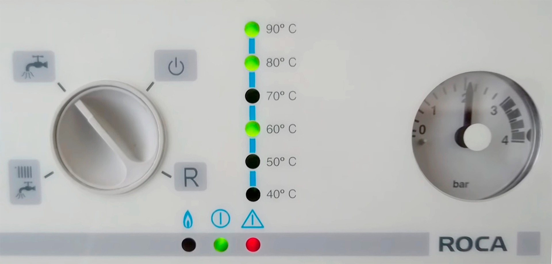 Caldera mural super-compacta, modelo Victoria 20/20, de Roca. Alto rendimiento. Ocupa un 30% menos de espacio que una caldera convencional. Pesa tan solo 33,5 Kg. Capacidad térmica es de 20.000 Kcal/h. Provee servicio de calefacción solamente, o calefacción y agua caliente para consumo sanitario (A.C.S.) Bomba y vaso de expansión incorporado.. Hola. Tengo una caldera de gas modelo Victoria 20/20. La calefacción solo se pone en marcha poniendo la temperatura al máximo. Y constantemente aparece el piloto de temperatura de 80º encendido. Hace poco tiempo de empezar a funcionar, aunque los radiadores no están muy calientes, la caldera marca noventa grados y se apaga.