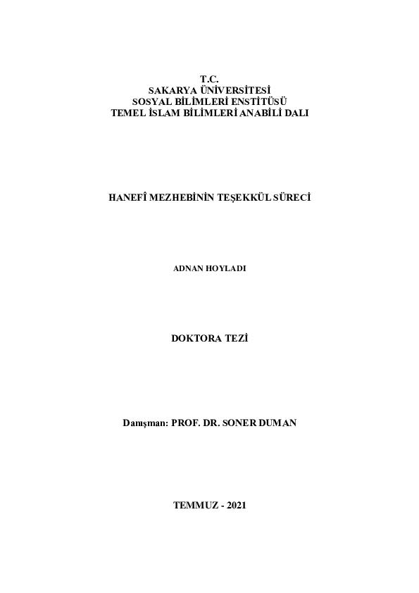 (PDF) HANEFÎ MEZHEBİNİN TEŞEKKÜL SÜRECİ (The Formation Process of The Hanafī Sect) Adnan